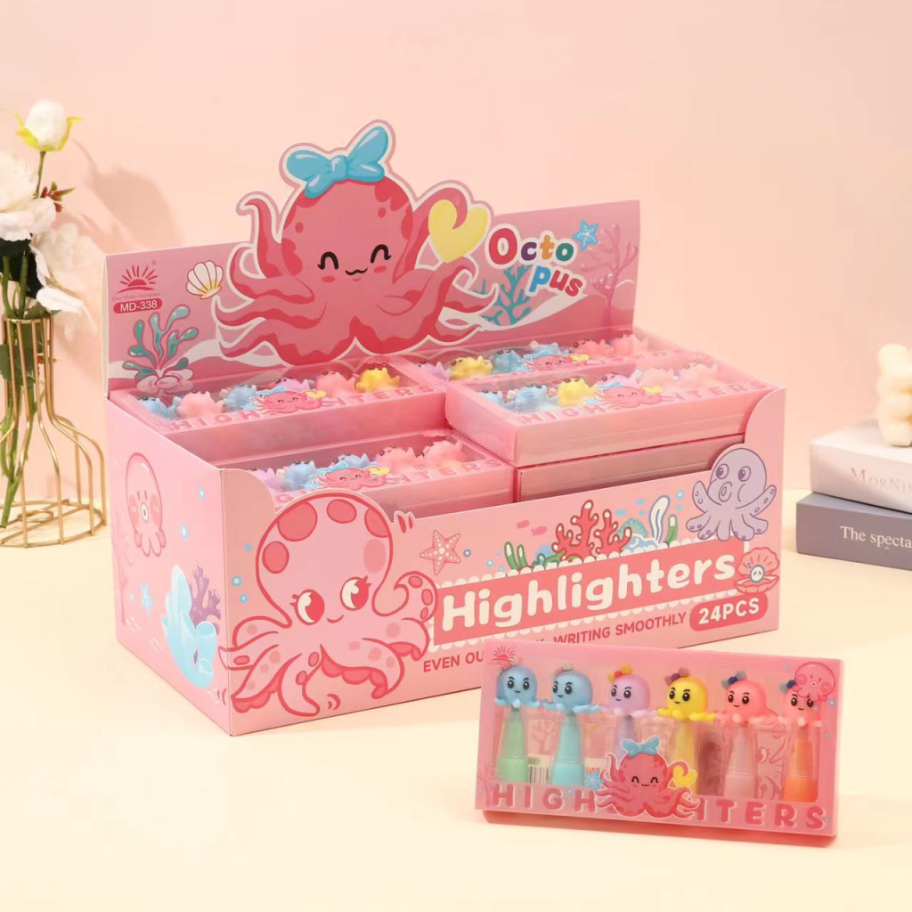 Highlighter Fosforlu Kalem 6'lı Set Ahtapot Desenli