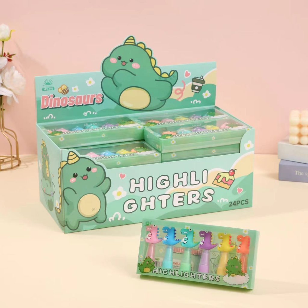 Highlighter Fosforlu Kalem 6'lı Set Dinazor Desenli