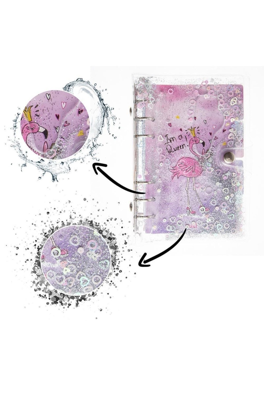 Flamingo Desenli Simli ve Sulu Kapaklı 6'lı Mekanizmalı Defter Ürün Boyutları 13 cm x 19 cm'dir. ; Ürünümüz 90 Sayfadır. ; Ürünümüzdeki Sayfalar Çizgilidir. ; Ürünümüzde Kullanılan Kağıt 70 gr ivory'dir. ; Ürünümüzün Özel Simli ve Sulu PVC kabı vardır. ; Ürünümüzde Özel 6 Mekanizma ve Çıtçıtlı Kapağı vardır. ; Flamingo Desenli Simli ve Sulu Kapaklı 6'lı Mekanizmalı Defter Flamingo Desenli Simli ve Sulu Kapaklı Mekanizmalı Defter, zarif tasarımı ve özel detaylarıyla ön plana çıkan bir defter seçeneğidir. ; Bu benzersiz defter, göz alıcı flamingo deseni, simli detaylar ve sulu kapak özelliği ile öne çıkmaktadır. ; Flamingo deseni, defterin estetik görünümüne canlılık ve şıklık katarken, simli detaylar zarafetinizi vurgulamak için özel olarak tasarlanmıştır. ; Sulu kapak mekanizması ise defterinizi korurken kullanımını kolaylaştırır. ; Bu özel defter, günlük tutma, not alma veya özel düşüncelerinizi kaydetme amacıyla mükemmel bir seçenektir. ; Hem pratik hem de stil sahibi olan bu defter, kullanıcılarına benzersiz bir deneyim sunar. ; Flamingo desenli, simli ve sulu kapaklı mekanizmalı defter, kaliteyi ve estetiği bir araya getirerek özel anılarınızı kaydetmenin keyfini çıkarmanız için tasarlanmıştır. ; Şimdi bu benzersiz defterle hayalinizdeki not alma deneyimini yaşayın!;